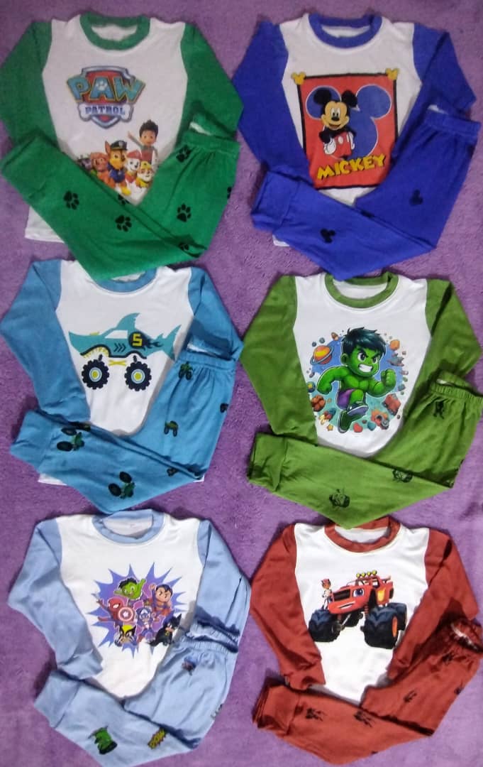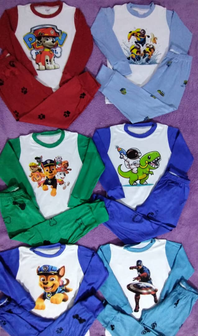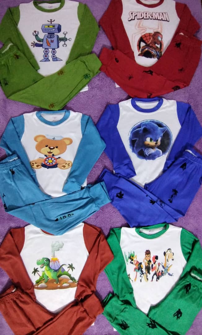 Pijamas de niños variedad de motivos de la talla 2 a la 8-10 en 6$ y tres por 15$.